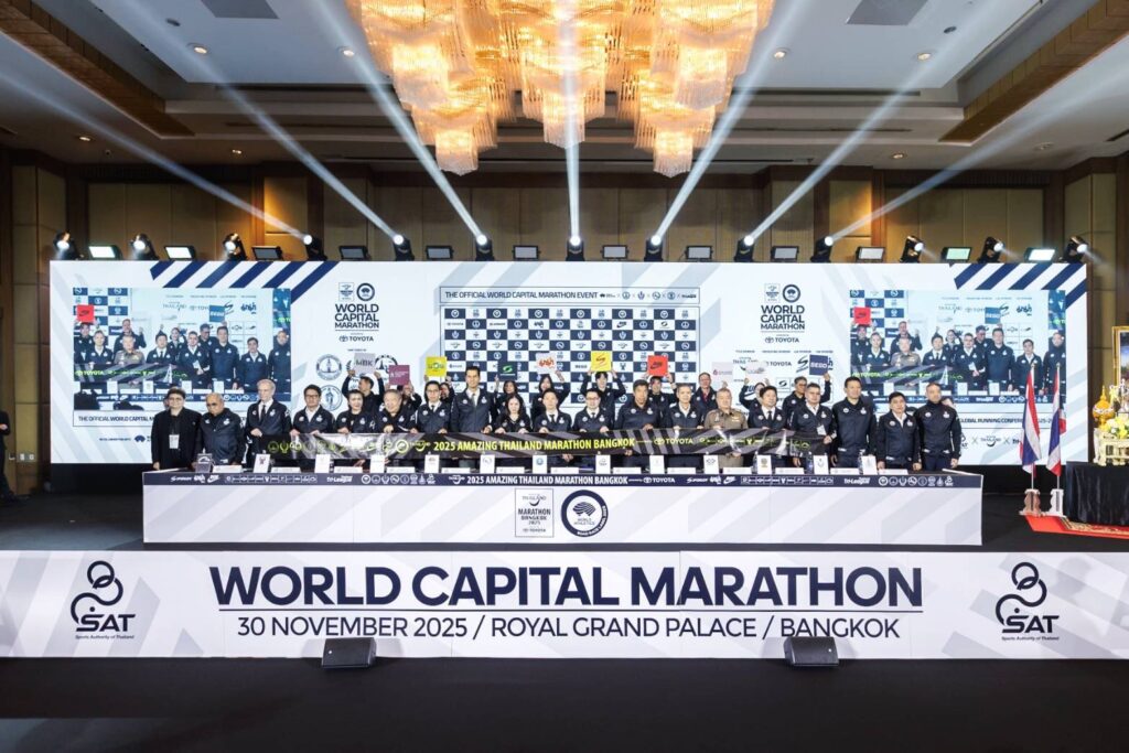 นายอรรถกร ศิริลัทธยากร รมว.กระทรวงการท่องเที่ยวและกีฬา กล่าวว่า “ผมรู้สึกเป็นเกียรติอย่างยิ่งที่ได้มีโอกาสมาเป็นประธานในพิธีแถลงข่าว การจัดการแข่งขันวิ่งมาราธอนในเมืองหลวง รายการ “Amazing Thailand Marathon Bangkok 2025″ ซึ่งได้รับการรับรองจากสมาคมกรีฑาโลก ให้เป็นการแข่งขันมาราธอนที่จัดขึ้นในเมืองหลวงอันดับต้นๆ ของโลก”